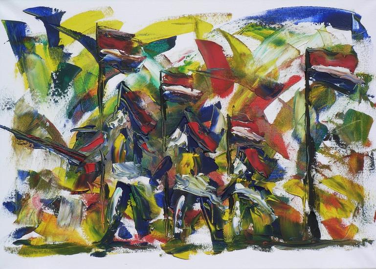 door een willem de kooning tentoonstelling raakte ik geinspireerd om zelf te gaan schilderen. ik hou van felle kleuren en een combinatie van fijn-en grof schilderen.