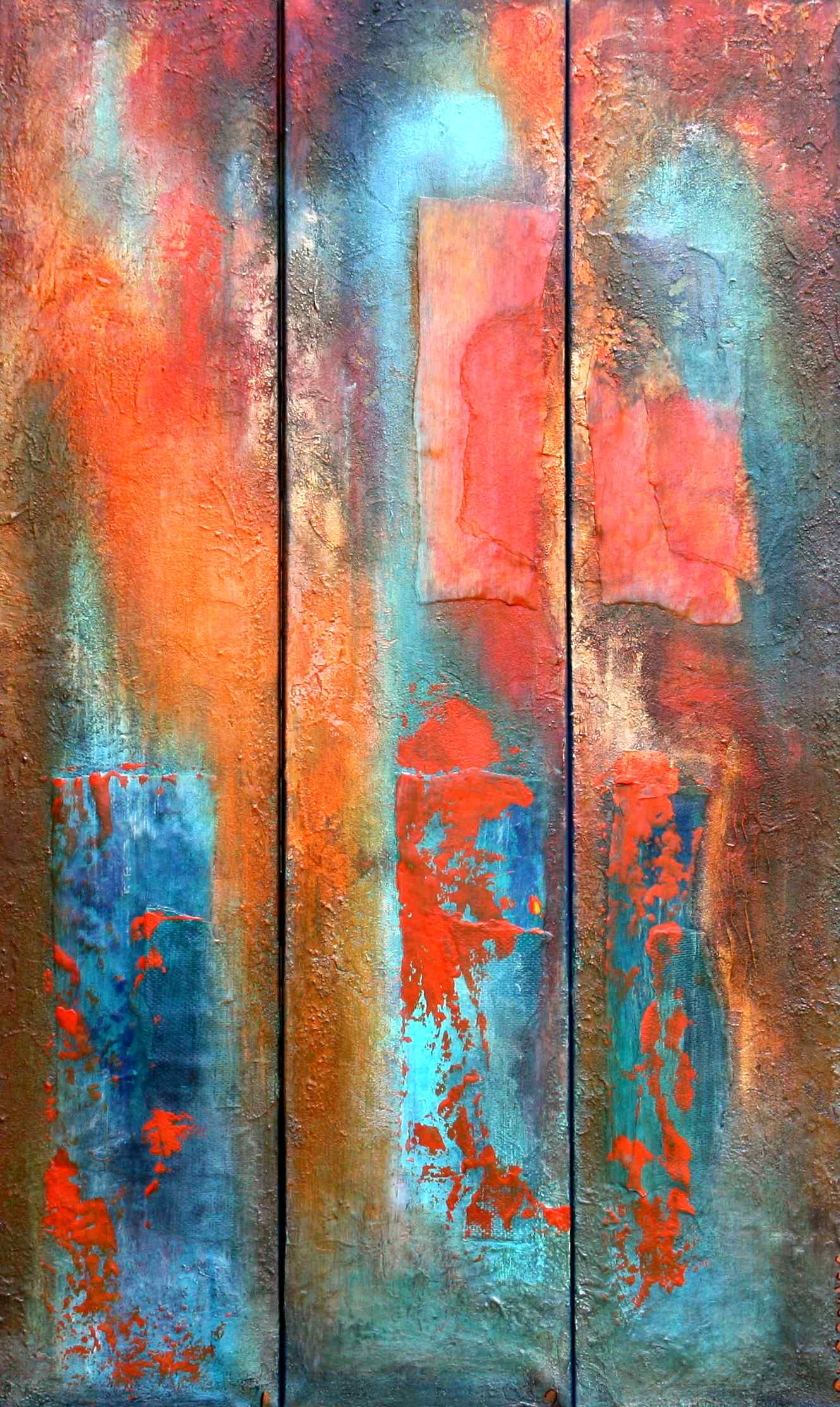 Oranje Water Mixed Media Drie Onder Turquoise Panelen Under