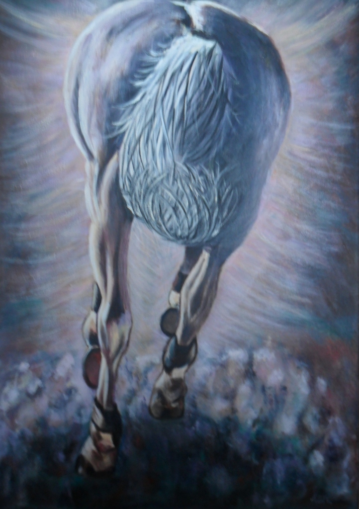 Graag neem ik U mee om een kijkje te nemen in mijn wereld waar paarden een centrale plek innemen. Na jaren actief recreatie ruiter te zijn geweest, zijn deze fascinerende dieren weer op mijn pad gekomen maar dit keer leg ik ze vast op het doek. De verschillende takken van sport, de prachtige uitstralingen en bewegingen, de schoonheid, ik probeer het allemaal te beheersen. Andere dieren schilder ik ook en natuurlijk zijn mijn eigen hond en kat dan ook model geweest.
