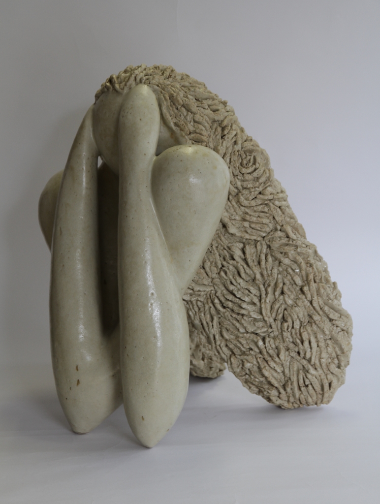 Zoektocht in keramiek: vrouwzijn in vloeiende lijnen en contouren; hoge dunne vaasvormen als weerspiegeling van een zoektocht naar identiteit...