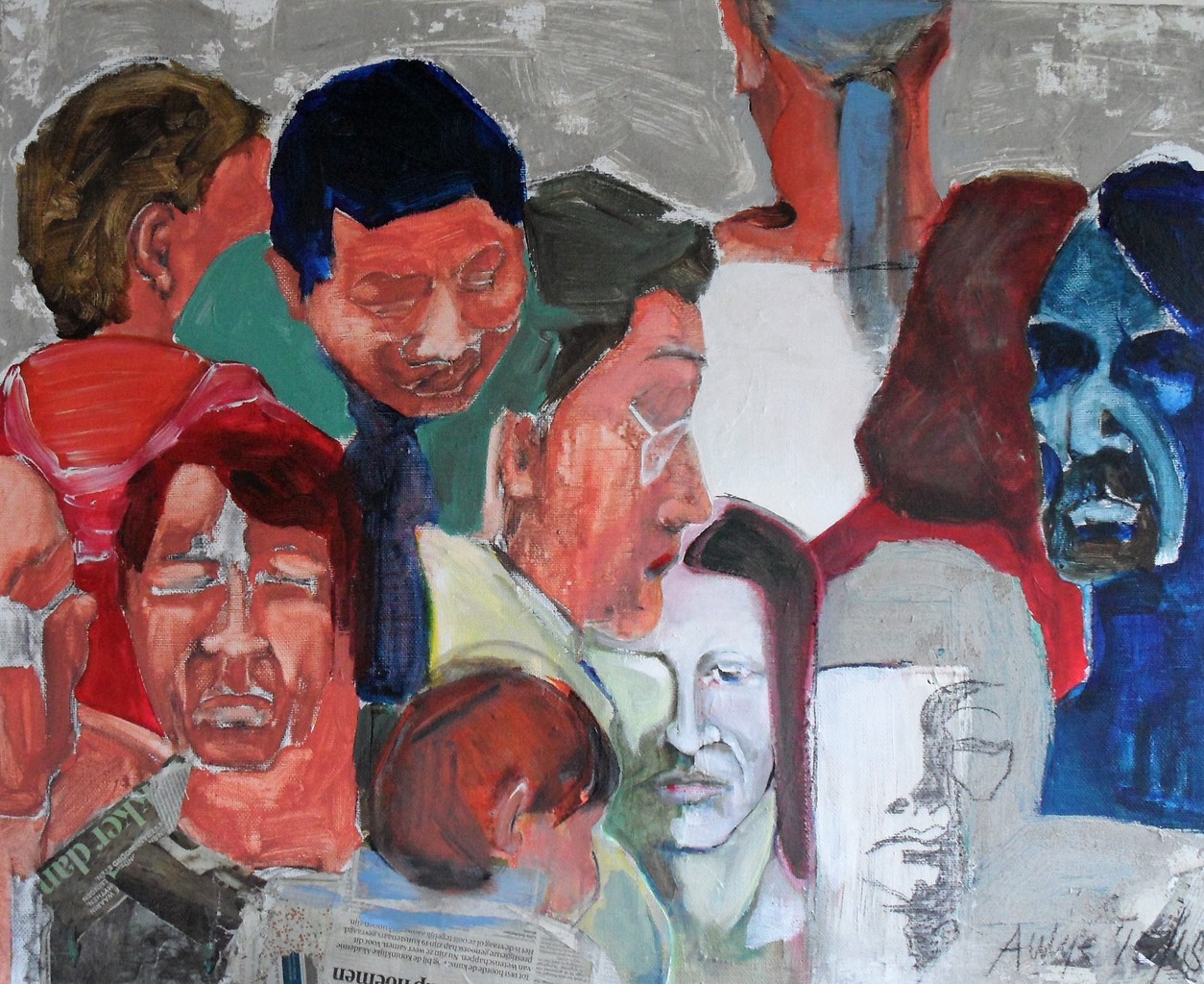 Figuratief Mensen Acryl Papier Kleurrijk Doek Abstraherend Houtskool Overlapping Portretten