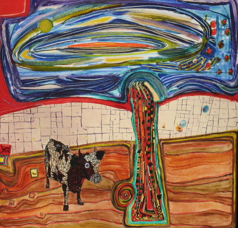Boom Koe Acryl Surreeel Blauw Goen Rood
