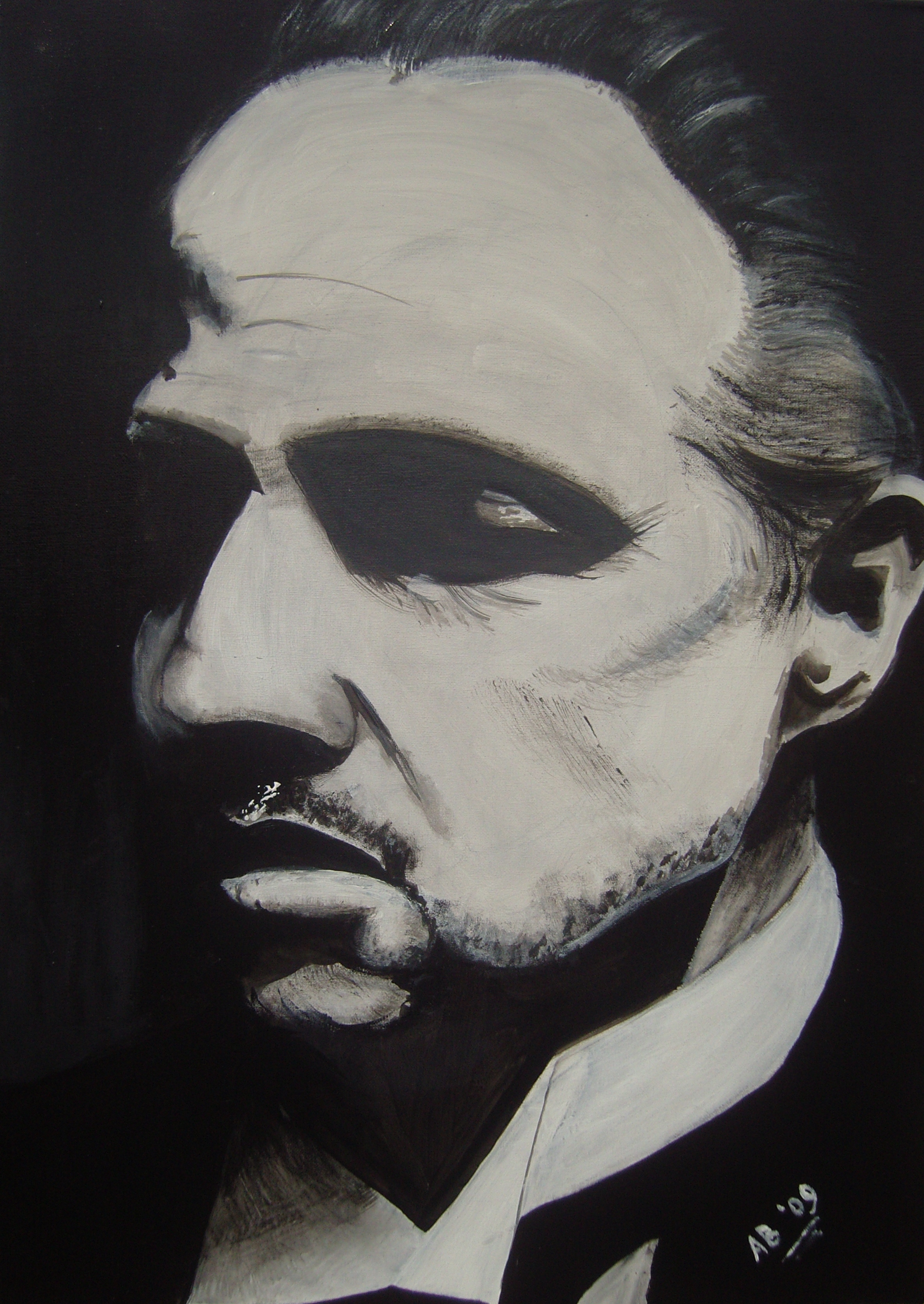 Schilderij in opdracht gemaakt, van de film 'the Godfather' (Don Corleone c.q. Marlon Brando)