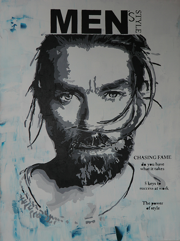 Portret Man Wit Grijs Zwart Blauw Acryl Paneel Magazine Cover