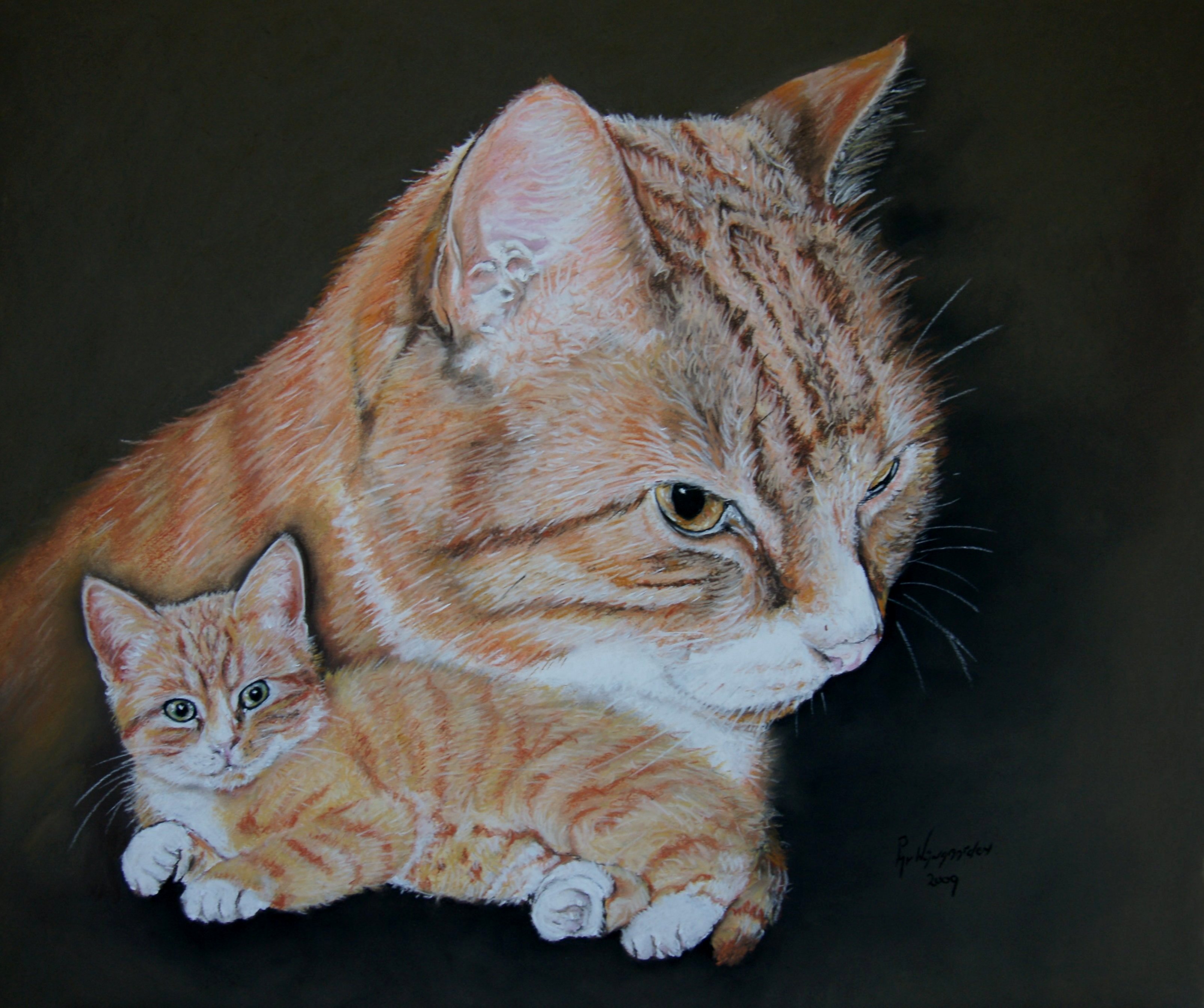 In opdracht gemaakt. Kat als kitten en volwassen.