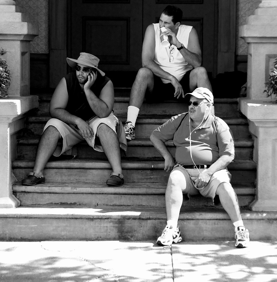 Wachtende mannen in the Universal Studio's, Orlanda, USA