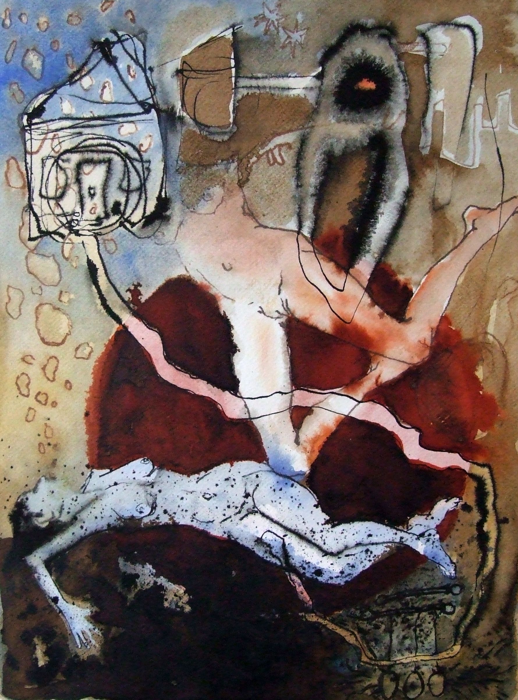 tekening met bister, inkt en ecoline