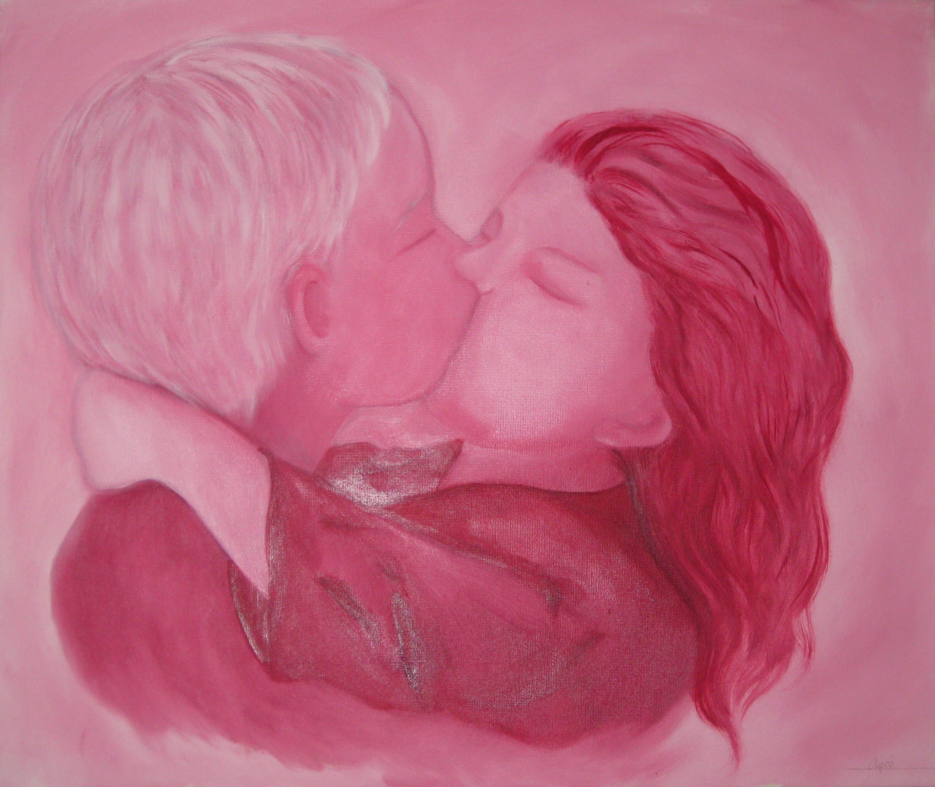 Liefde Olieverf Kinderen Kus Rood/roze