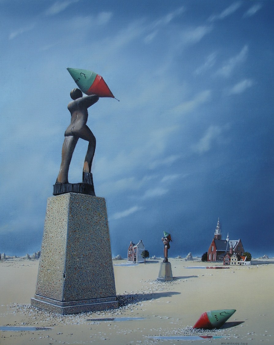 Bas Verkade schildert surrealistische taferelen (olieverf) met fotografische precisie.Zeer verfijnd werk op papier ,doek en paneel.