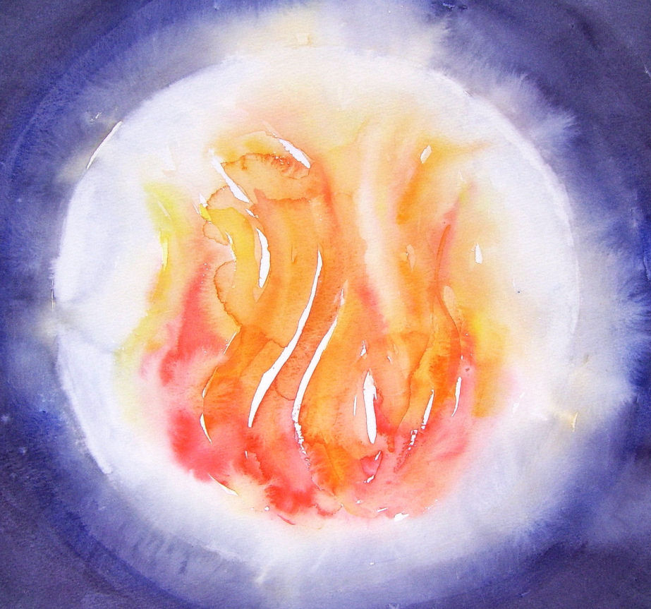 Volle maan met daarin intuitief het Goudhaantje als vuur geschilderd. Resultaat: De tijger.