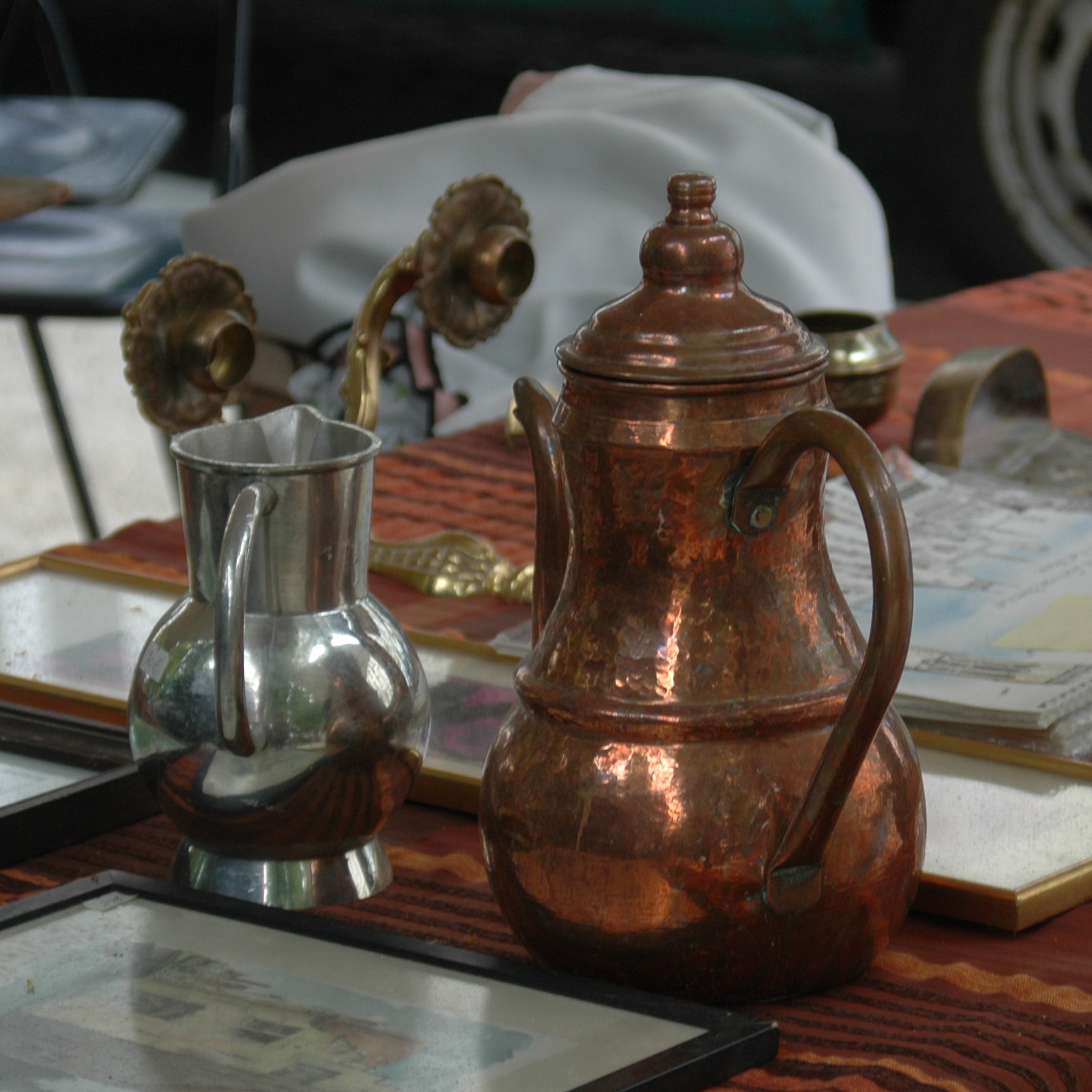 twee oude kannetjes op een rommelmarkt