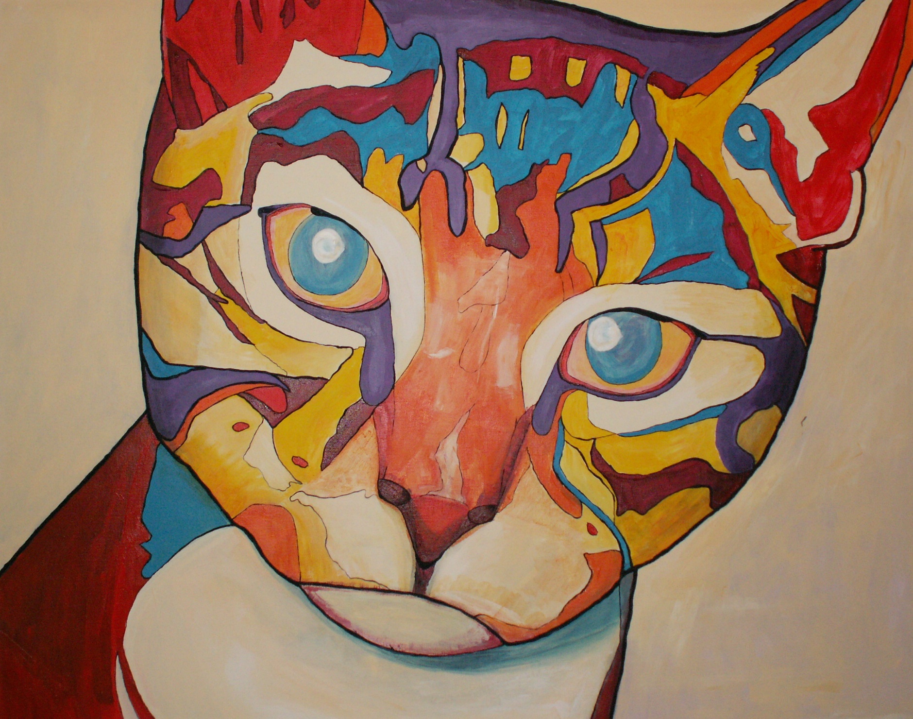 Acryl Kleurrijk Doek Kleur Katje Nieuwsgierig