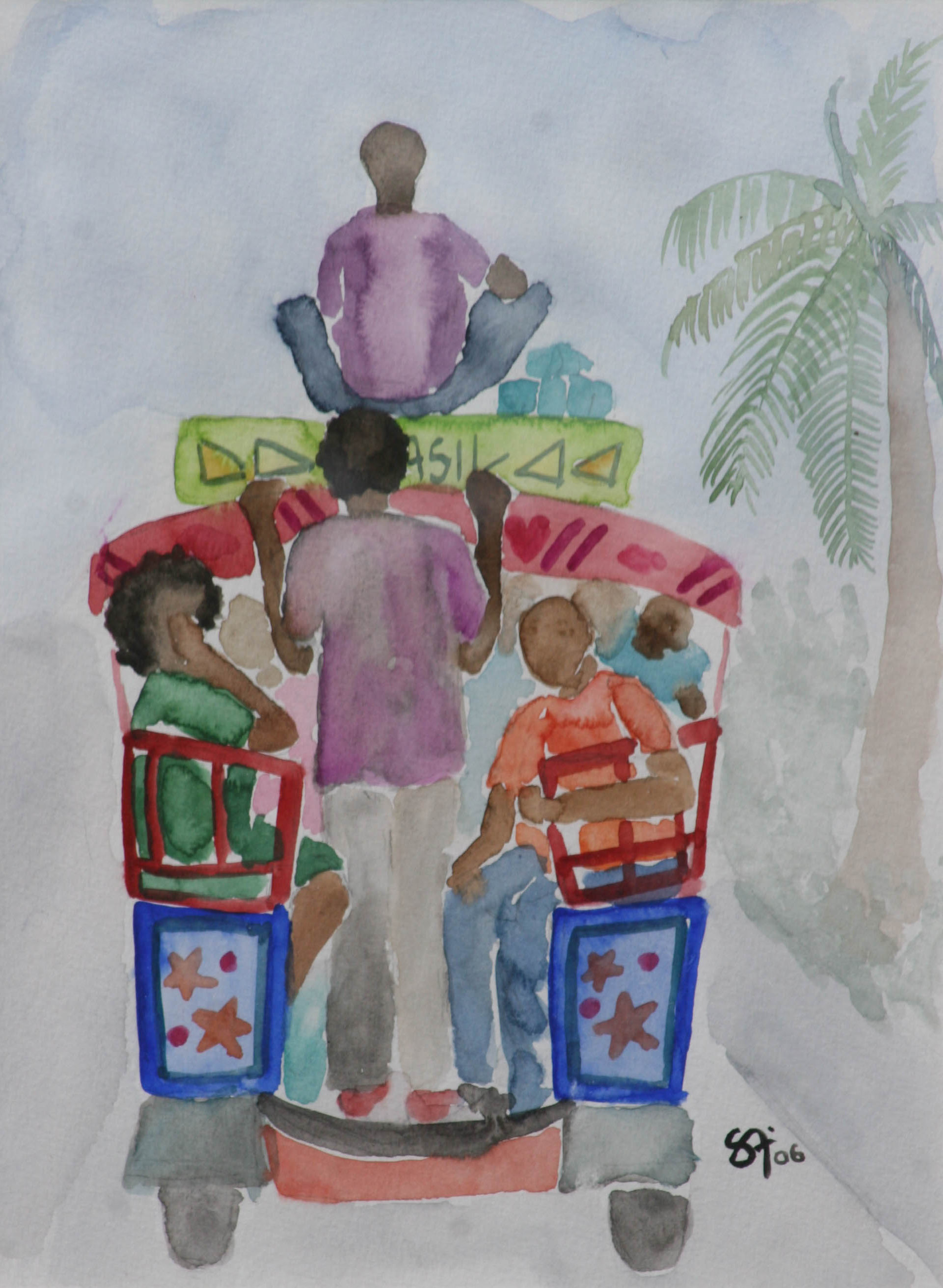 Kleurrijk Aquarel Auto Car Port Prince Colourful Watercolour Transport Haiti Au Taxi Taptap