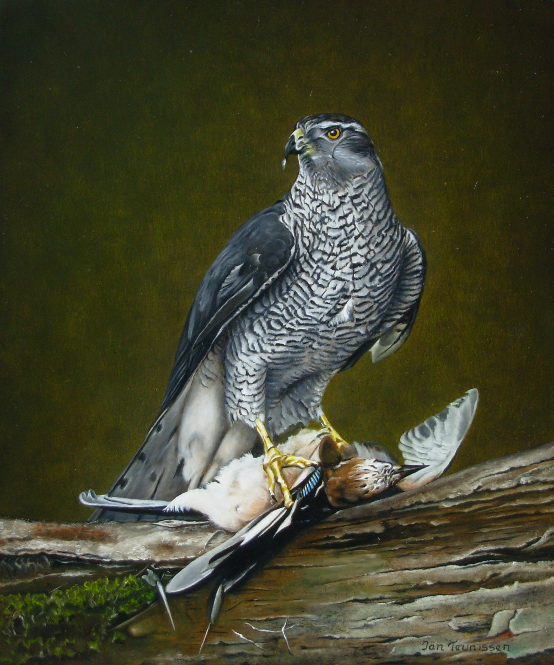 Vogel Portret Dieren Realistisch Olieverf Stilleven Havik Ekster Vlaamse Gaai Juveniel