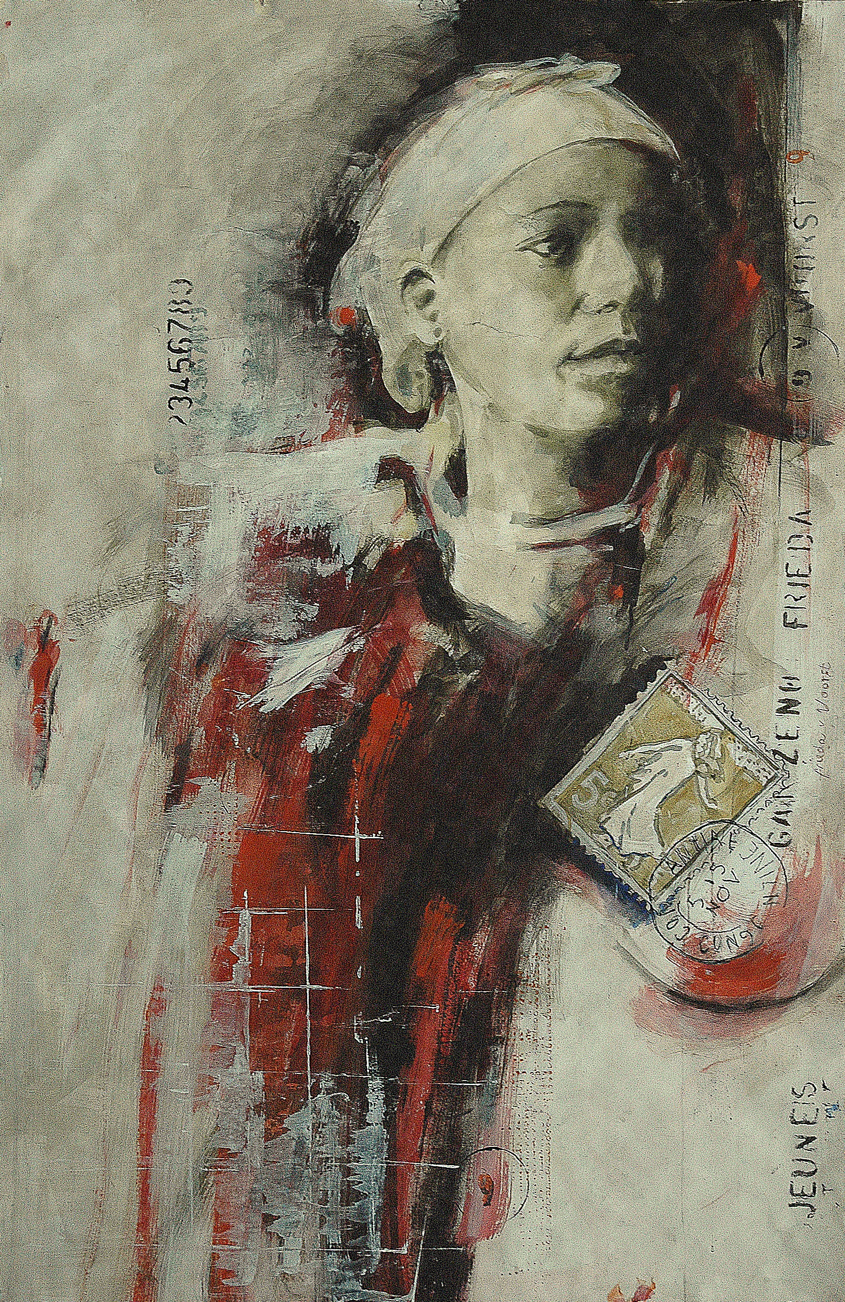 Ik woon en werk in Noord Italie,in het bergdorp Garzeno boven het Como-meer. Mijn schilderijen kenmerken zich door een combinatie van figuratie en abstractie. Grafische elementen, foto's, tekst,collages van stukken krant vormen een essentieel onderdeel van de totale compositie.