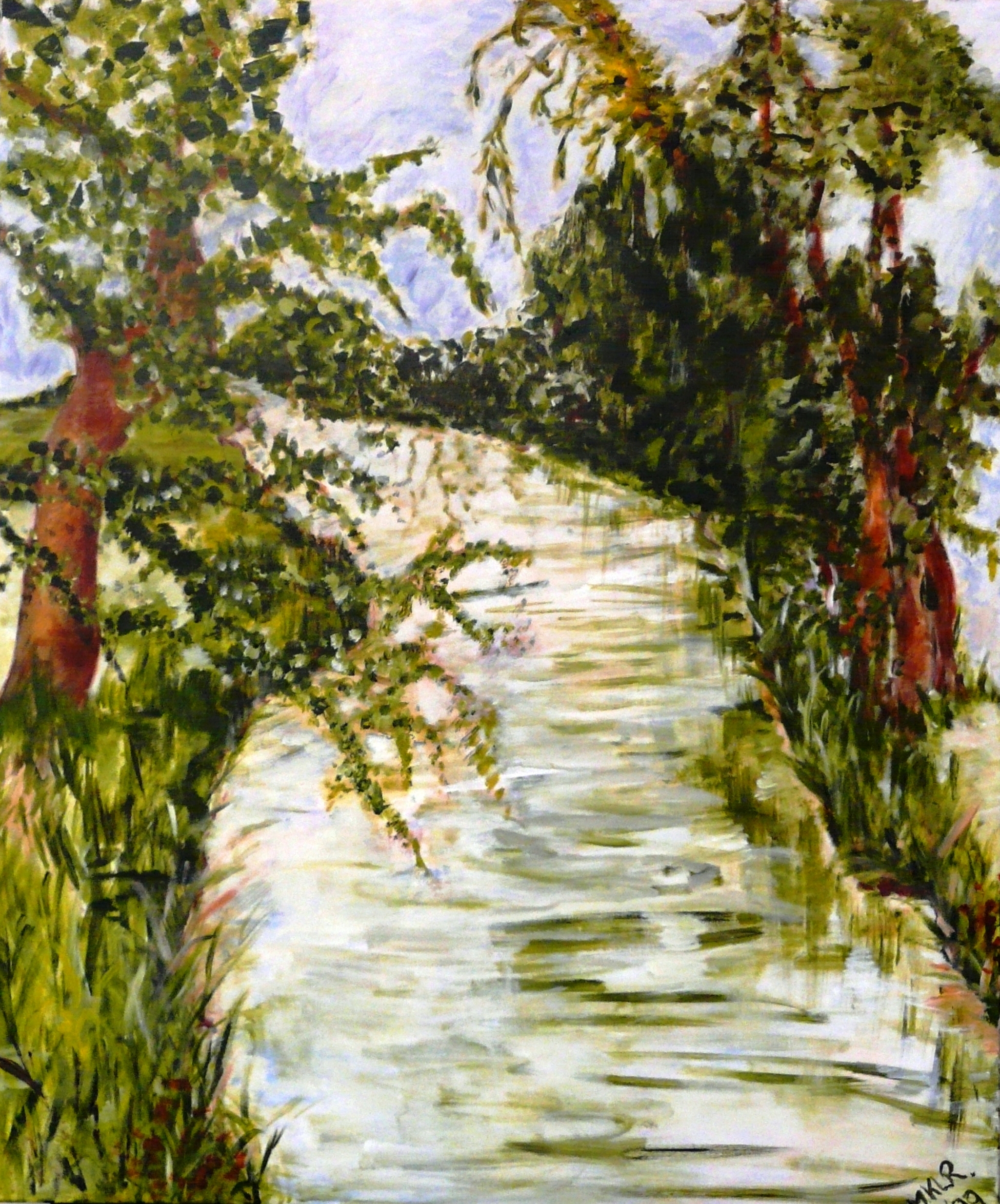 Naar aanleiding van een opdracht heb ik ' de Dinkel ', een rivier in Overijssel geschilderd.