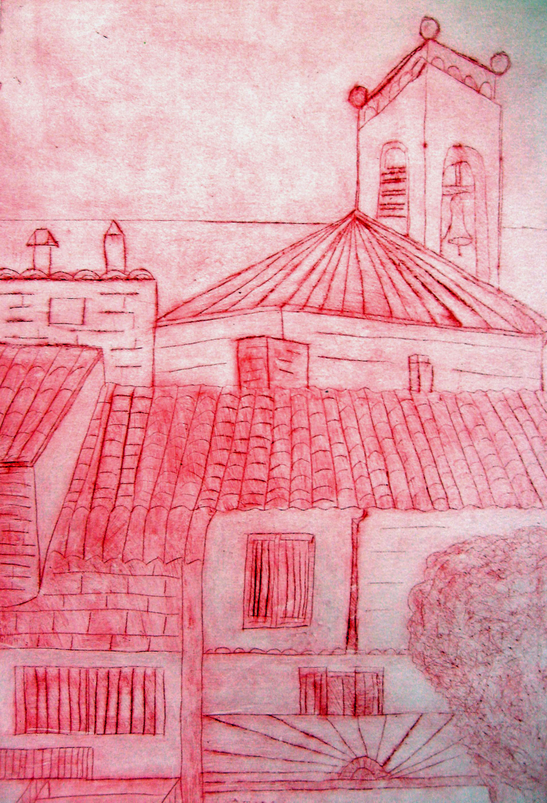 Ets gemaakt met rode inkt op een pleintje in La motte Chancalon