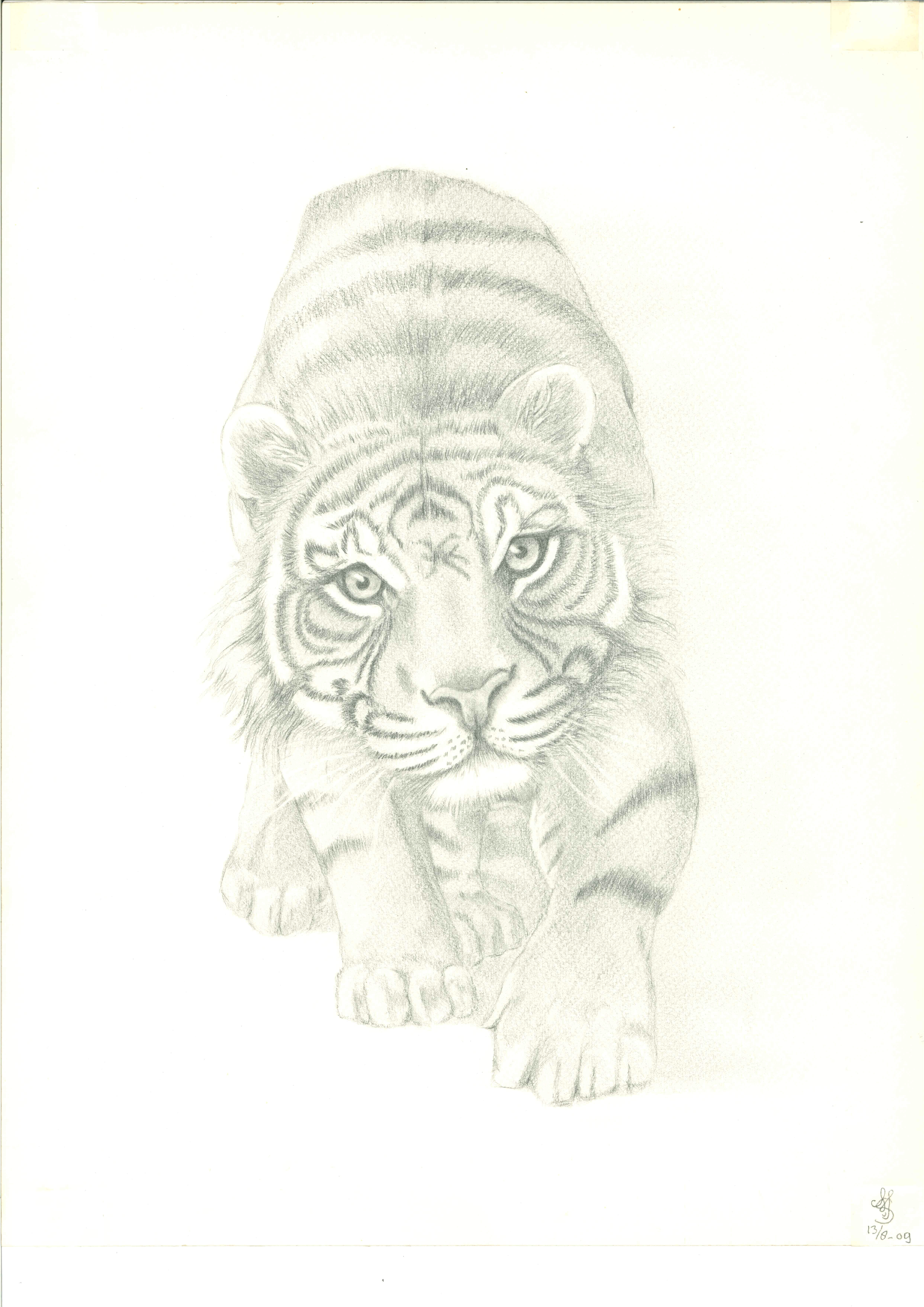 Sluipende Tijger Panthera tigris altaica Tekening op Fabrino