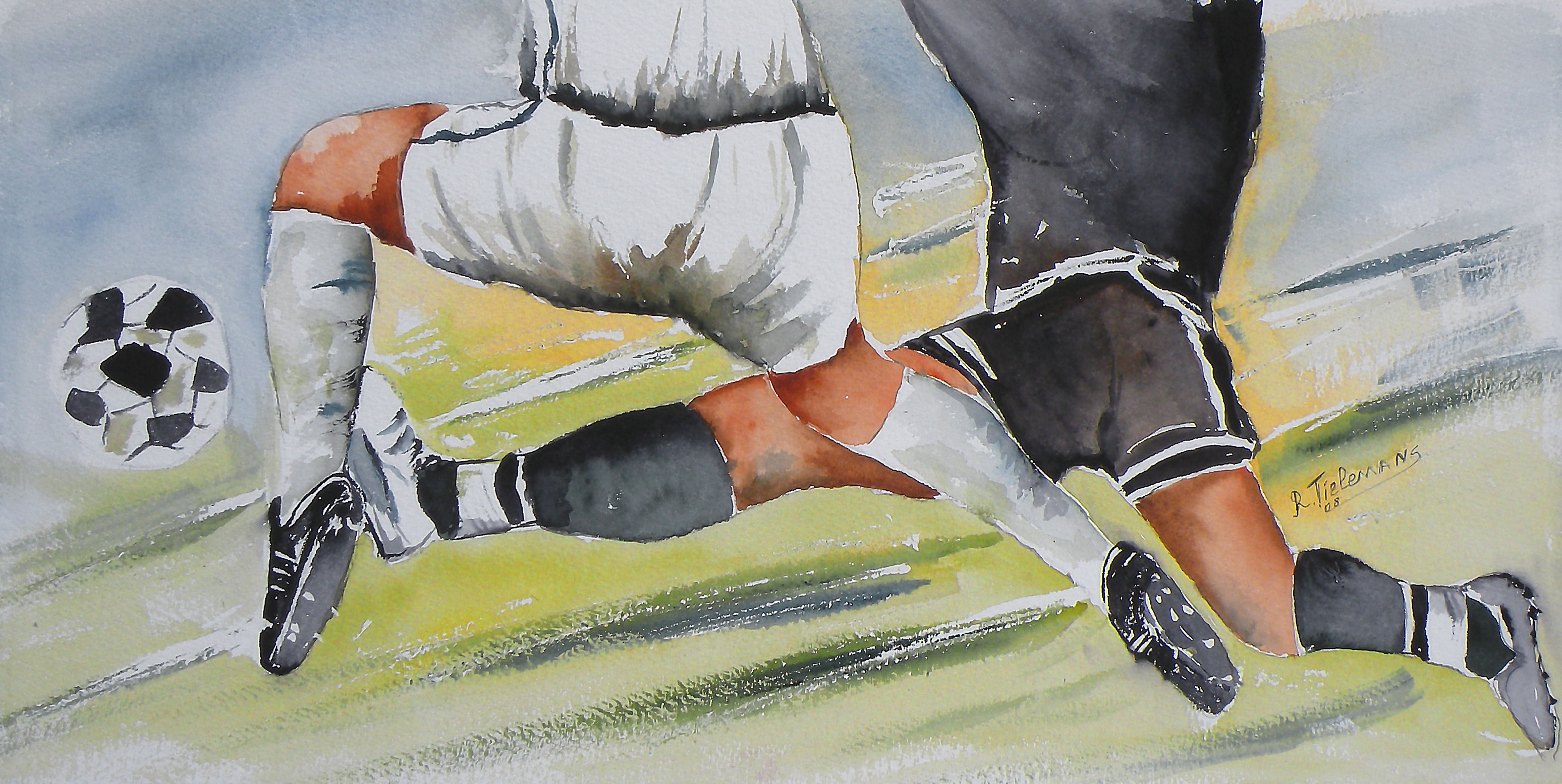 Wit Grijs Geel Zwart Blauw Yellow Groen Blue Papier Sport Aquarel Realistisch Green Verhalend Black White Schoen Watercolor Voetbal Bal Ball Realistic Duel Grey Shoe