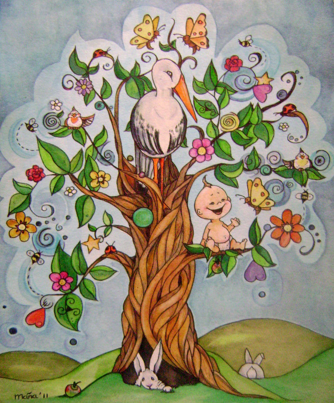 Meisje Boom Ooievaar Geboortekaartje