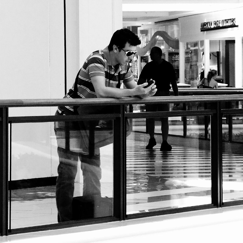 Wachtende man in de Aventura Mall in Miami, Florida, USA