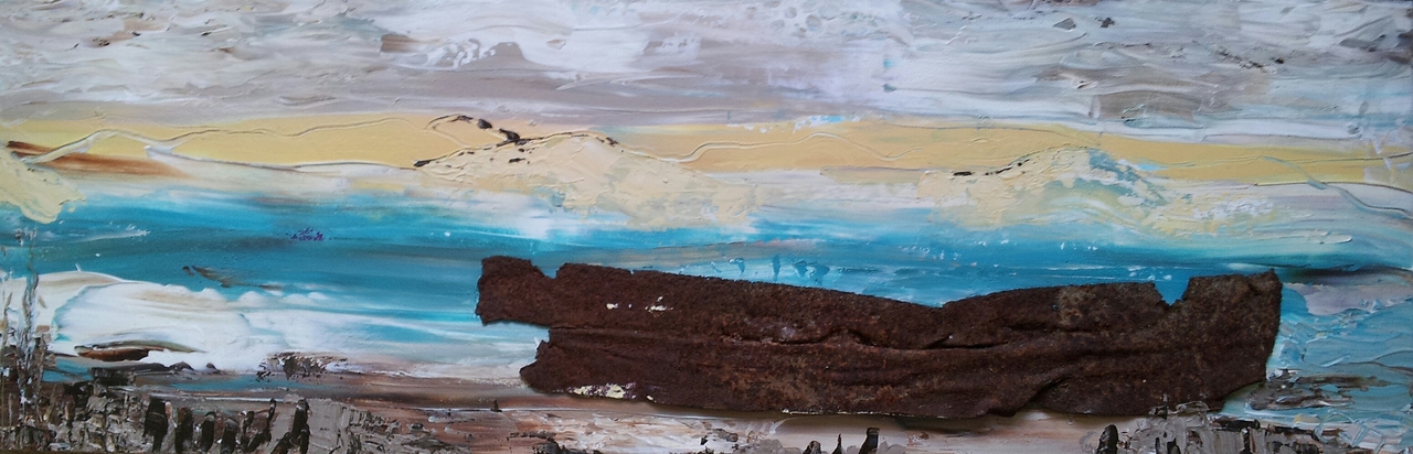 Schip gestrand. Schip is een stuk ijzer afkomstig van een oude Scheepswerf.