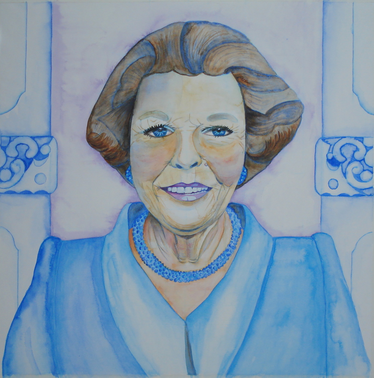 Portret Schilderij Mensen Aquarel Koningin Beatrix Kleurrijk Monique Van Vilsteren Schildersverdriet