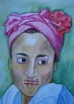 Portret Schilderij Mensen Aquarel Meisje Muts Art Kunst Kleurrijk Monique Van Vilsteren Schildersverdriet