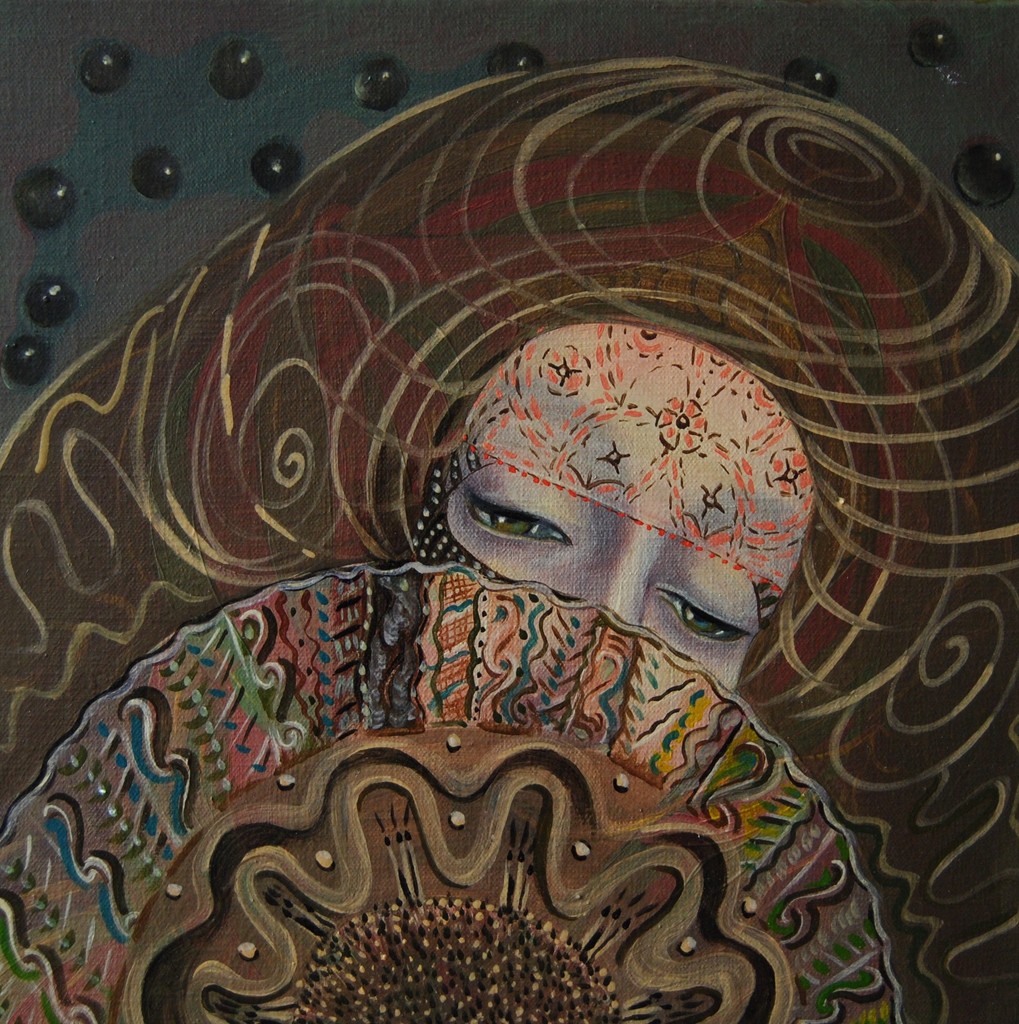 Vrouw Olieverf Doek Heilige Sluier Details Woman Bruin Brown Saint Lace Kant Waaier