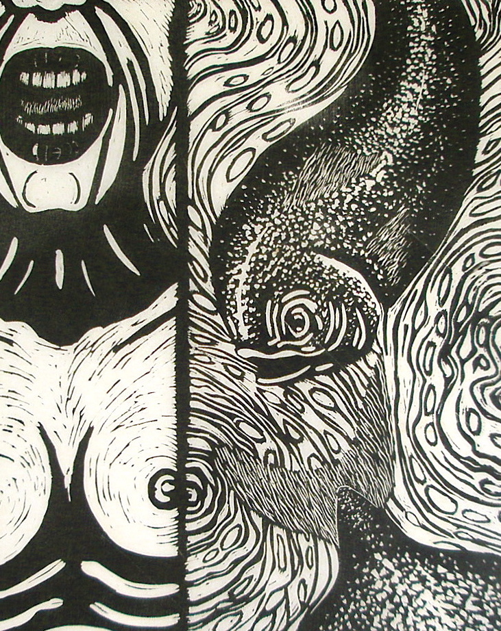 Grafiek Gedrukt Tafereel Portret Dieren Vrouw Vissen