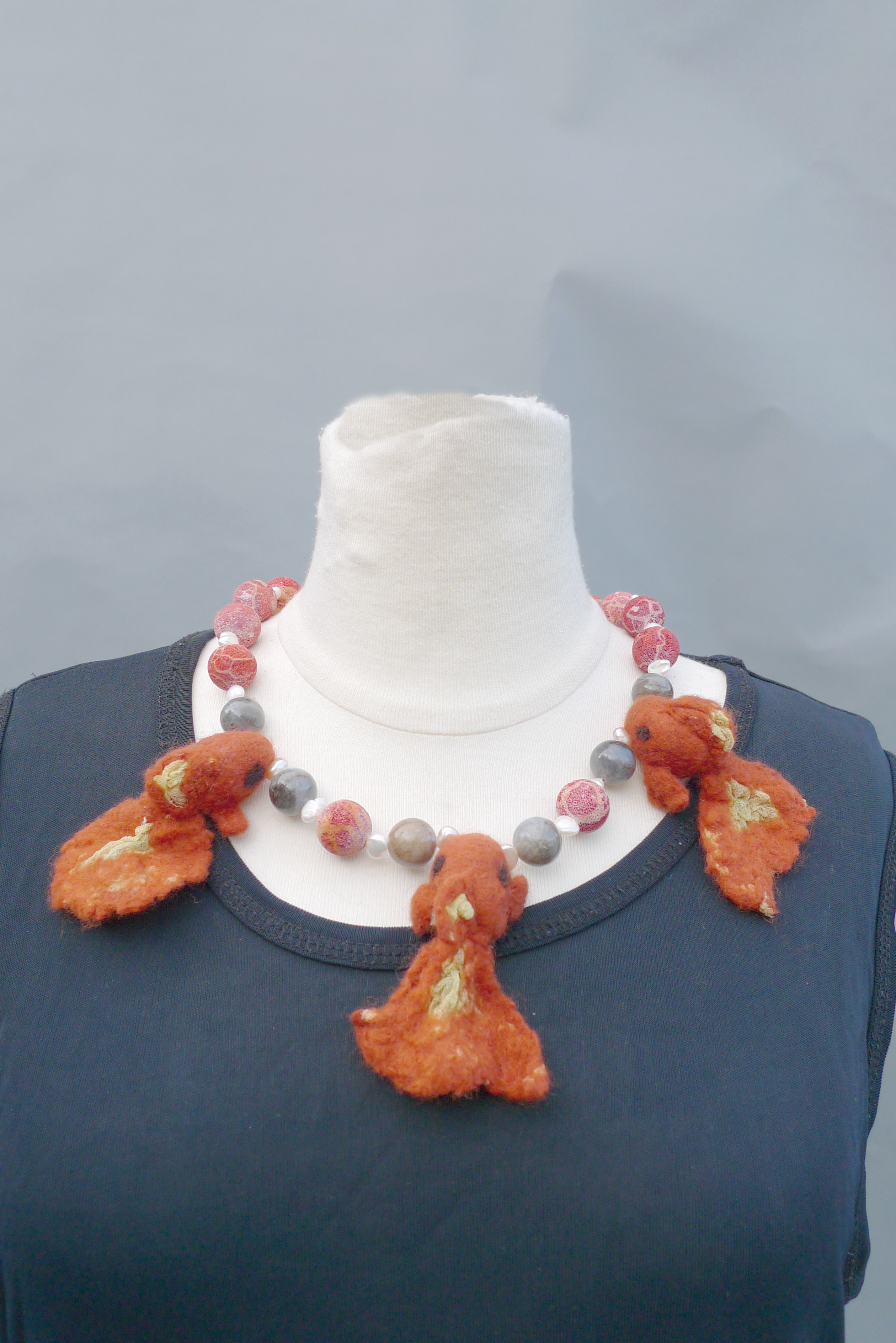 Vilt Textiel Zilver Sieraad Sieraden Vilten Halssieraad Bloedkoraal Zoetwaterparel Halfedelsteen Labradoriet