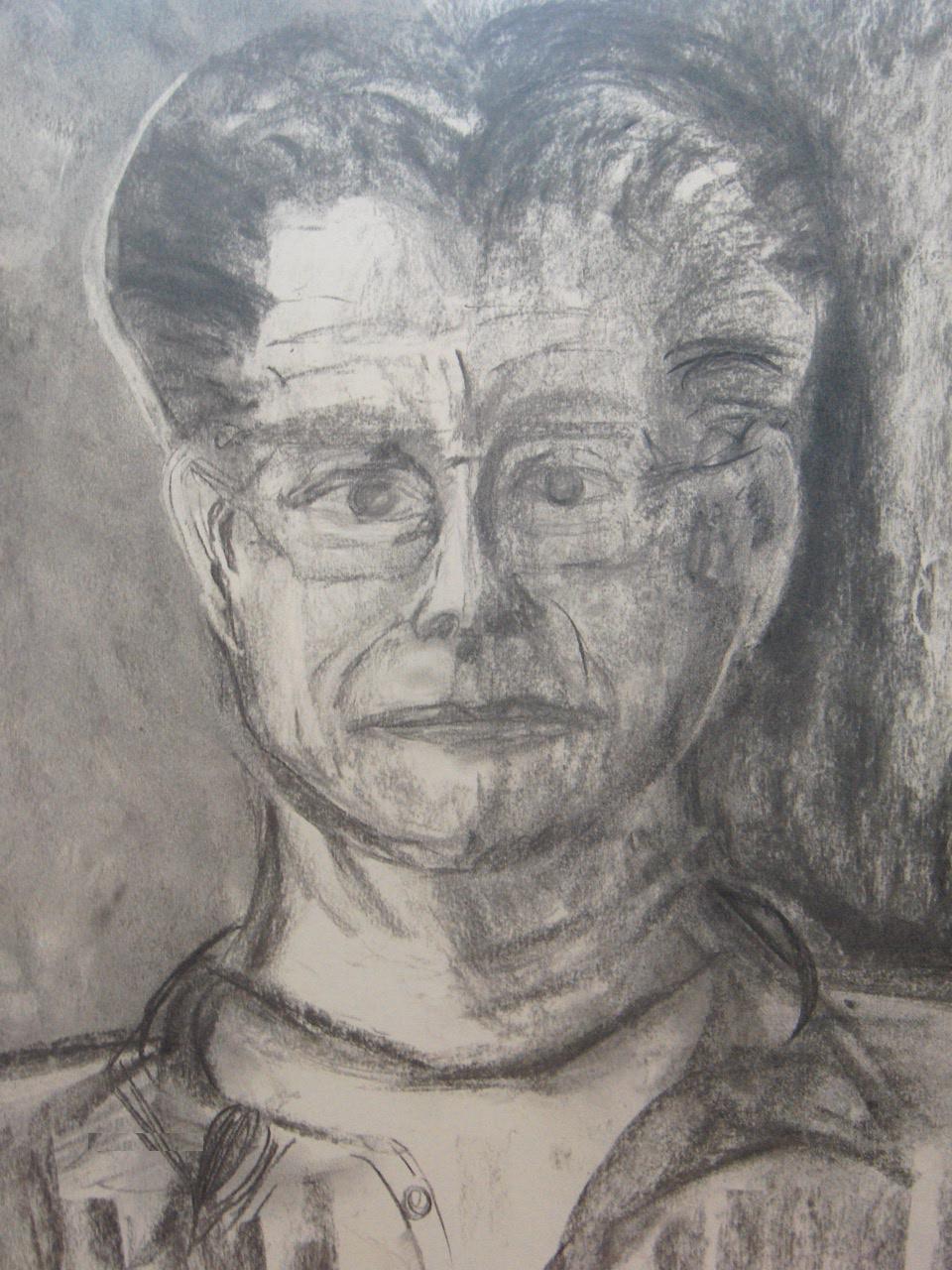 Zwart Portret Man Schets Tekening Houtskool Snelschets