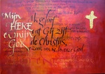 Vanuit de kalligrafie ontstond deze nieuwe kunstvorm: letterkunst.Laag over laag, kleur over kleur wordt over elkaar heen gevormd tot een harmonisch geheel.