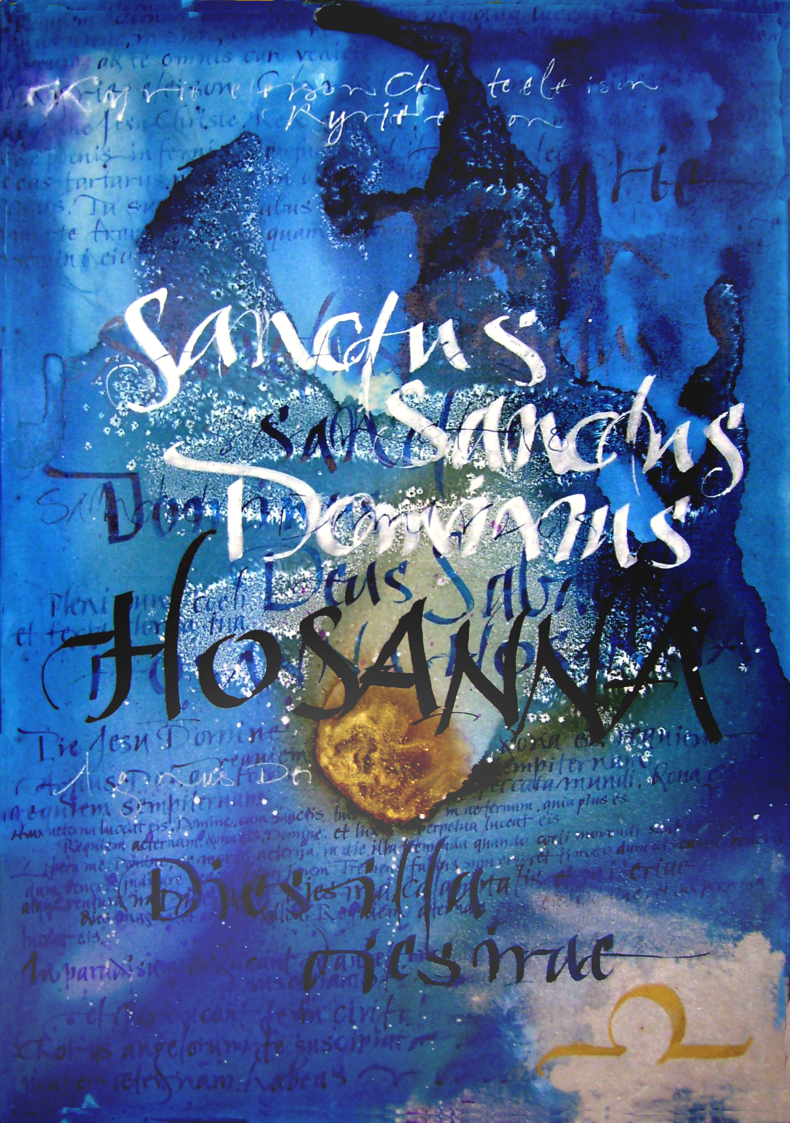 de tekst van het Requiem van Faure, uitgewerkt zoals het tot mij kwam. De jongensstemmetjes zijn vertolkt door kristalletjes. Het zware Hosanna met het orgel zwart en groot op de voorgrond.