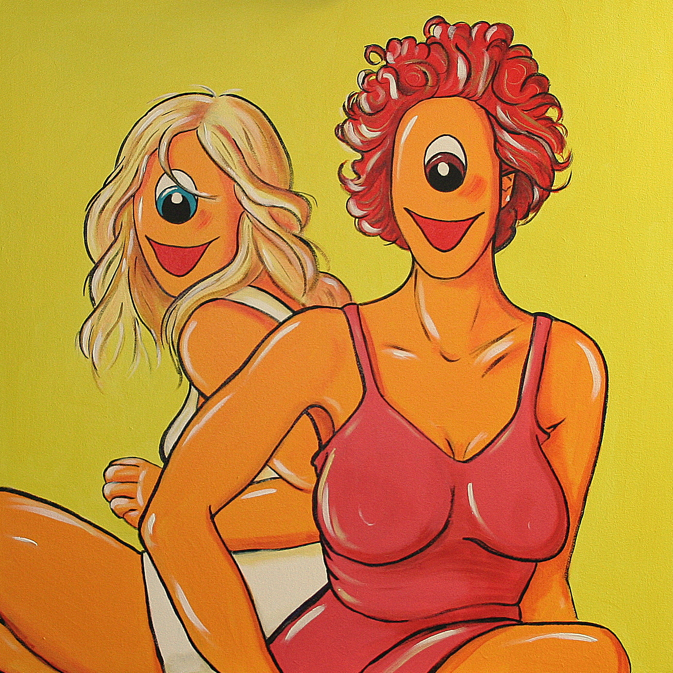 Geel Yellow Kleurrijk Vrolijk Meisjes Kijken Bar Girls Dames Looking Bright Colourfull Merry Roddelen Powerfull Lady's