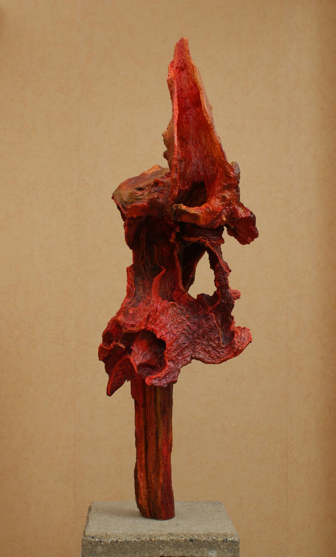 Rising hope . Samengestelde houtsculptuur ( meerdere boomstronken )met expressieve kleuren beschilderd.