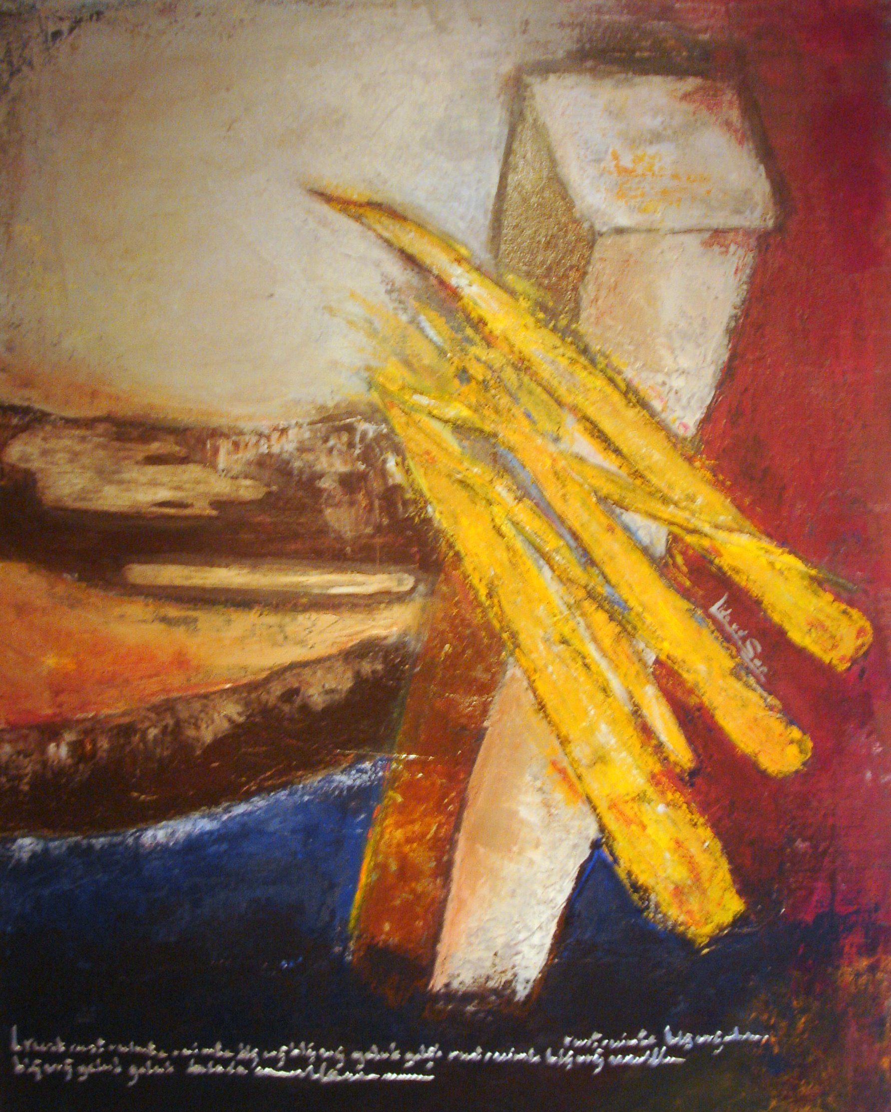 Acryl verf, kaasdoek, boomschors