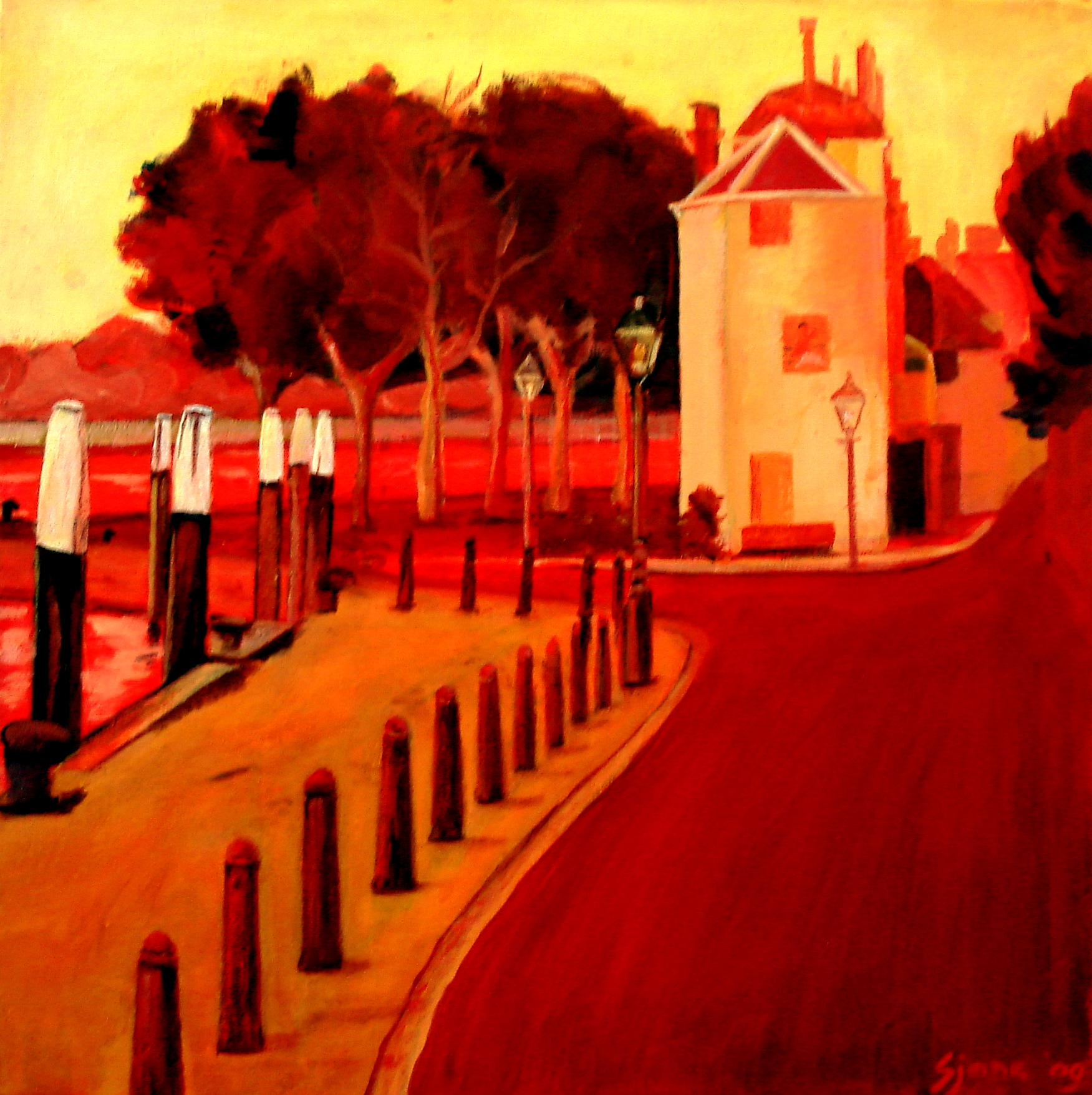 Het landschap is mijn grootste inspiratiebron. In de zomer heb ik veel buiten geschilderd. Mijn landschappen zijn kleurrijk en sterk geabstraheerd. Op het moment zijn mijn landschappen abstract.