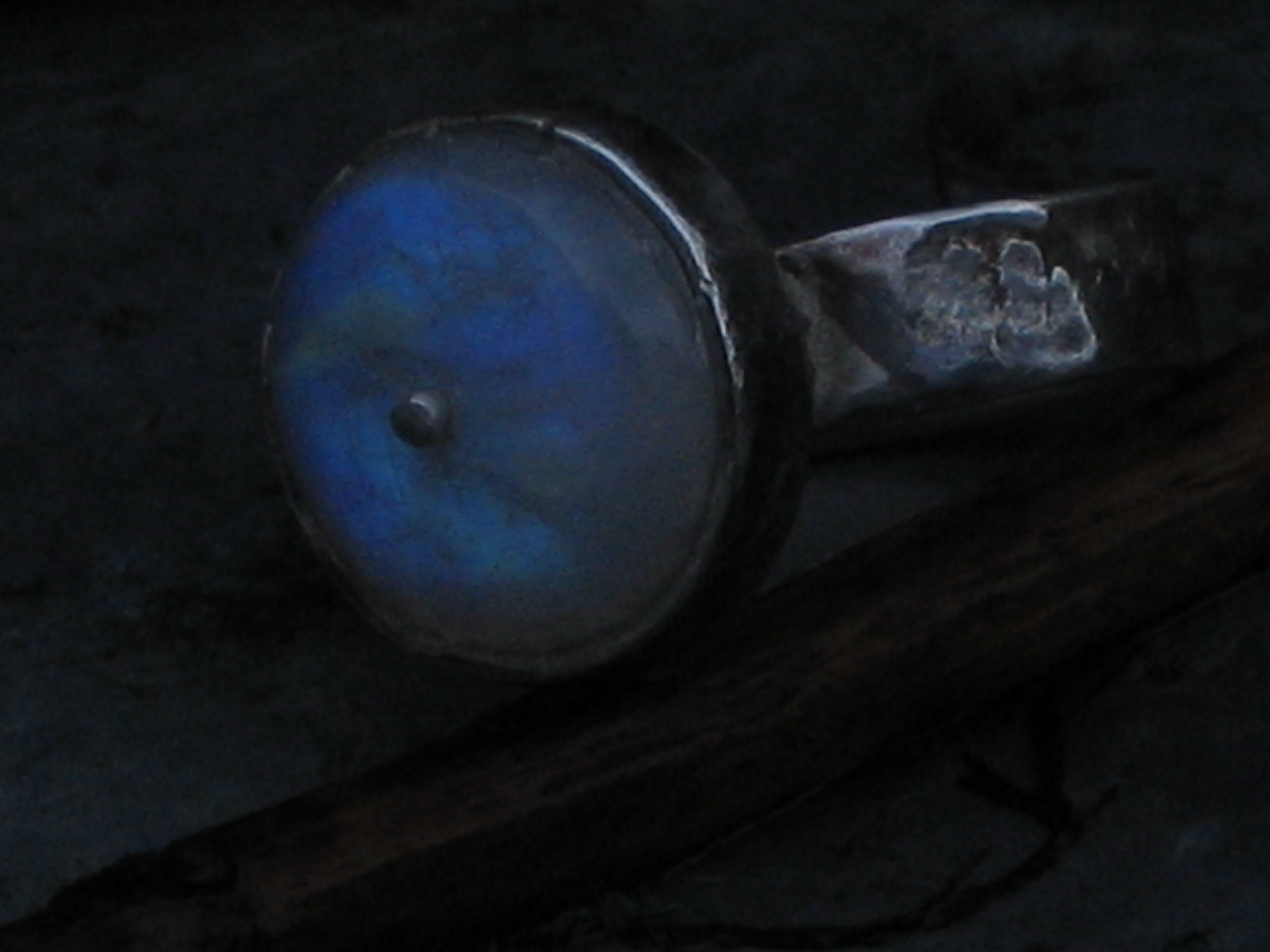 De prachtige gloed van een maansteen in een zilveren ring.