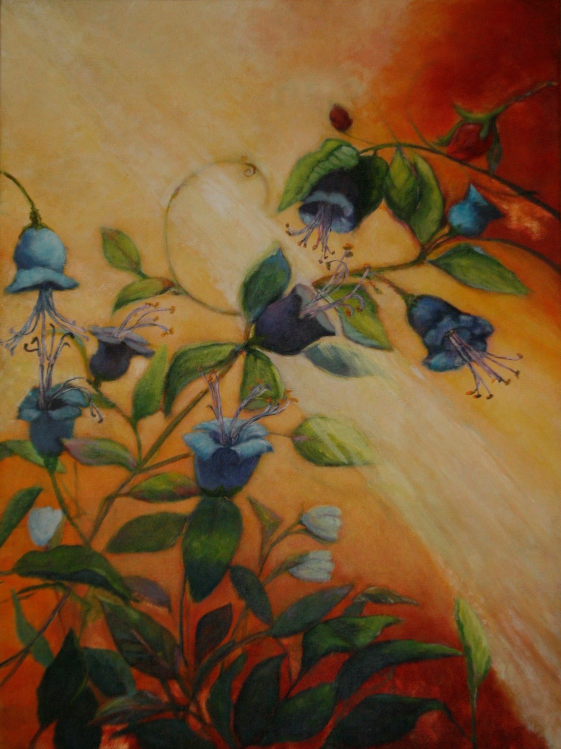 Bloemen Paars Blauw Rood Zonnestraal Acryl Fantasie Heldere Kleuren
