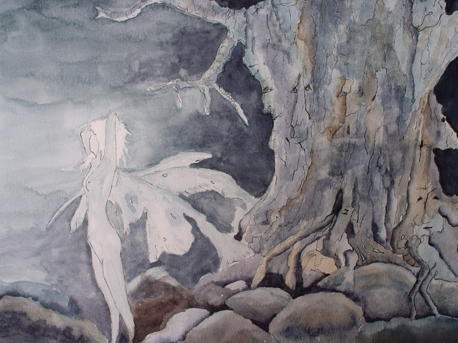 Mystiek Naakt Vlinder Nude Aquarel Nacht Boom Engel Butterfly Angel Elf Tree Fee Night