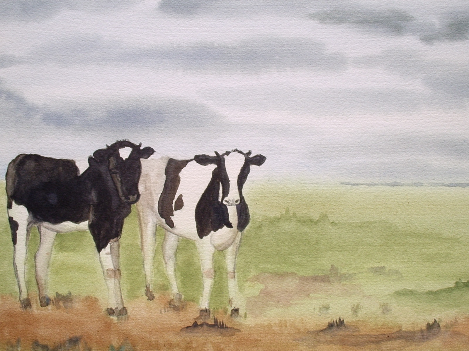 Dieren Aquarel Realistisch Koeien Landschap