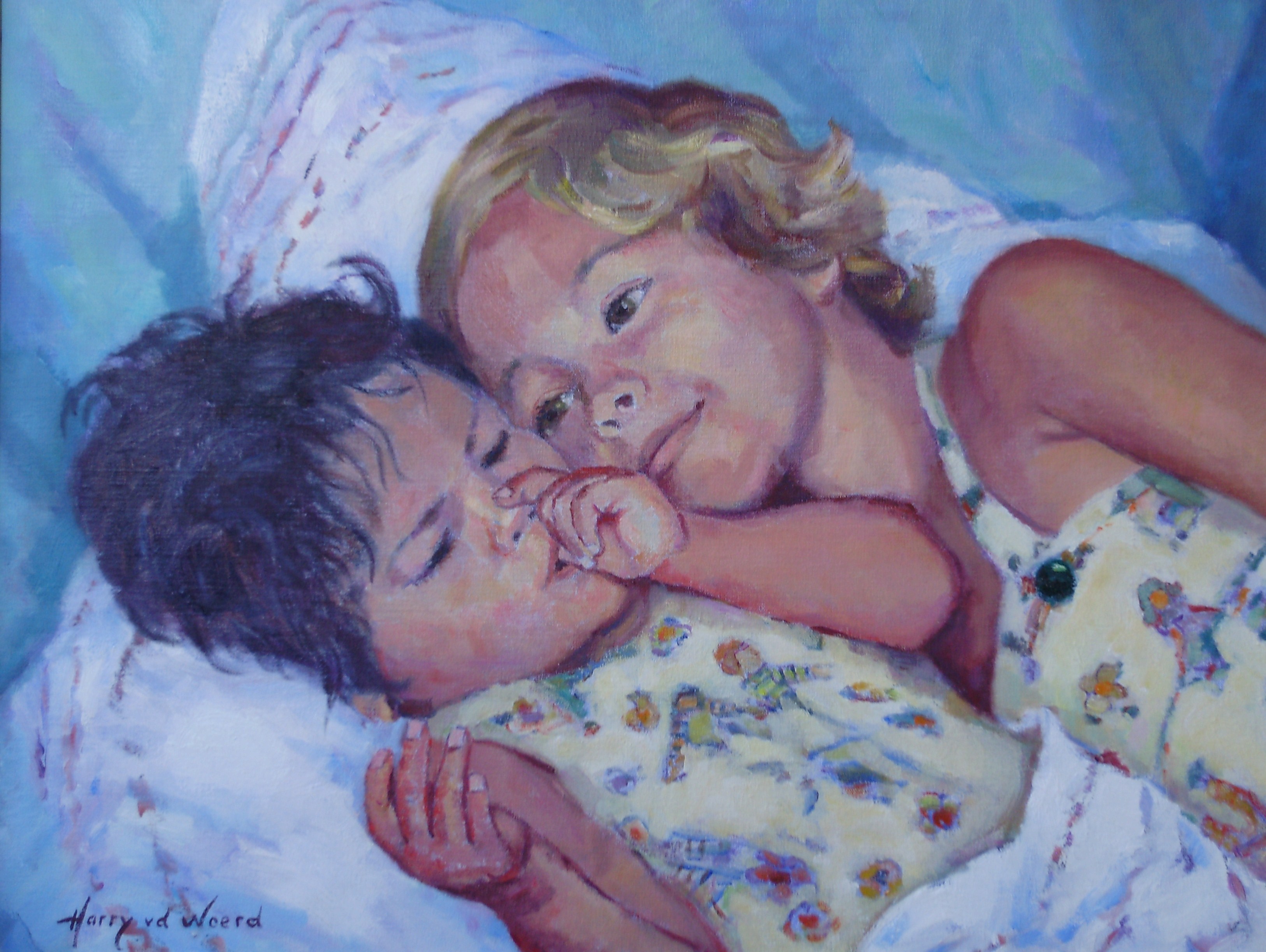 Twee zusjes samen, in hun oogjes zie je de vertedering naar elkaar