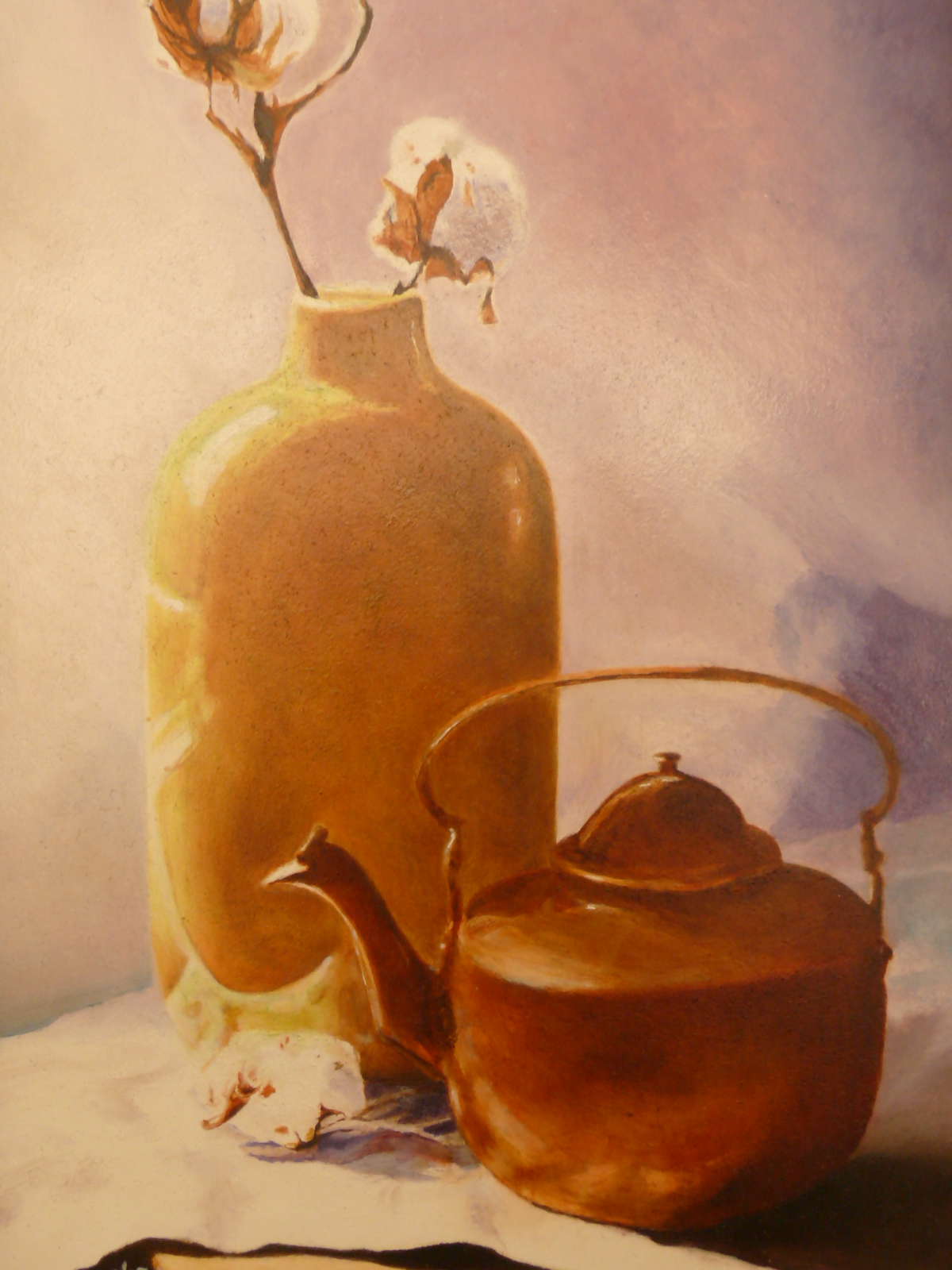 Geel Koper Vaas Realistisch Kruik Katoen Ketel