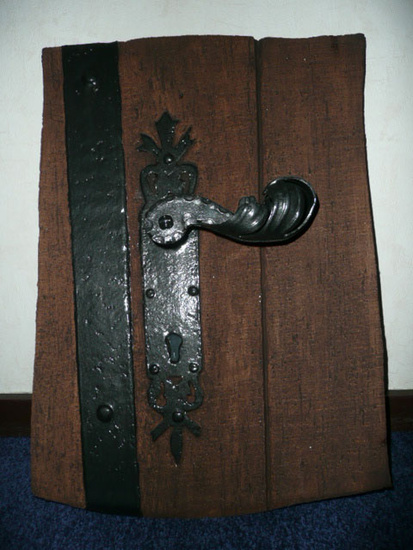 Gemaakt van chamotteklei, behalve het handvat van de klink.