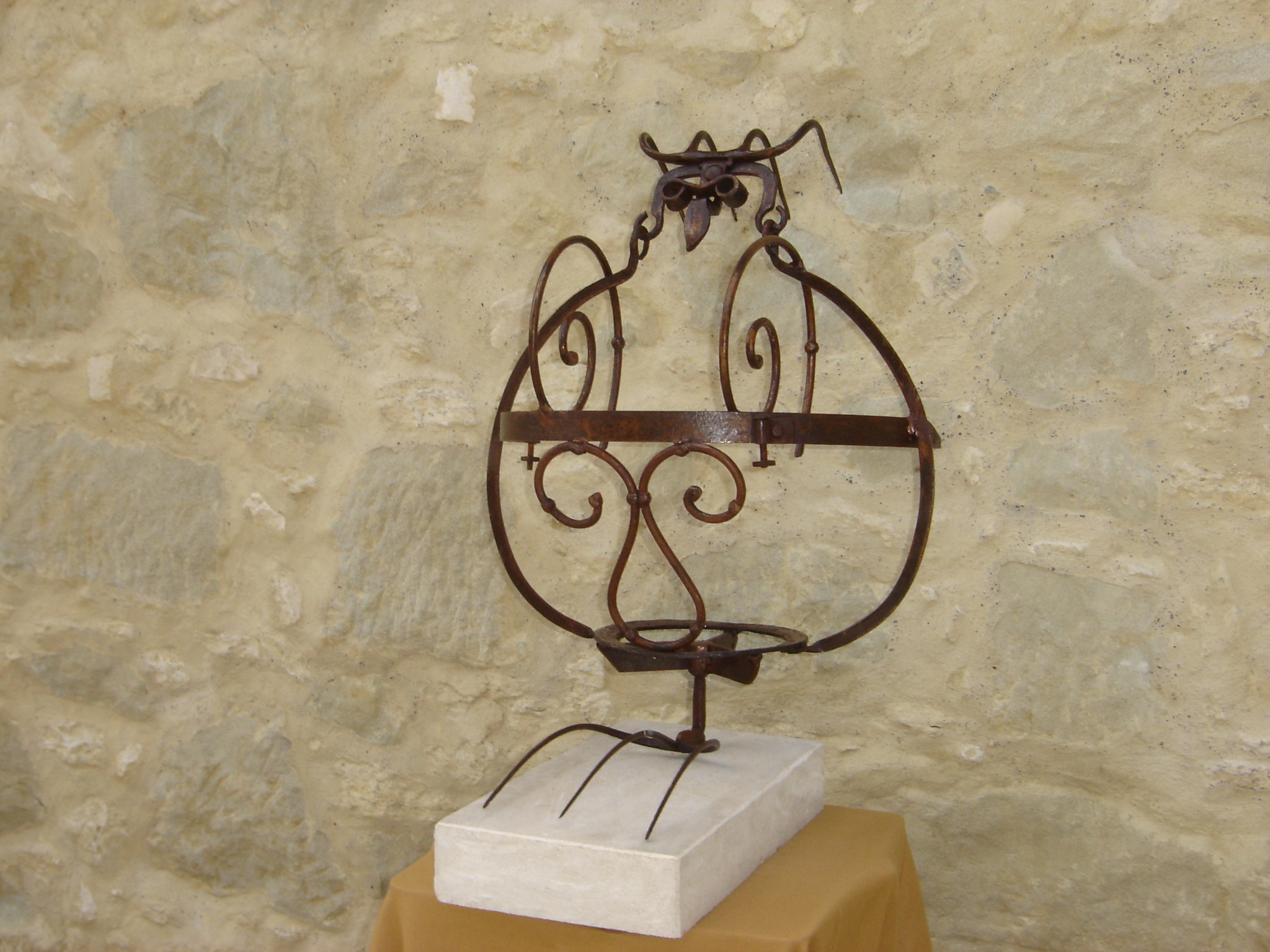 Sculptuur genaamd 'Molly' opgebouwd uit oud ijzeren voorwerpen zoals rieken, deel van een olielamp, krullen va een antiek bed. Molly is 'une femme developpée', een 'ontwikkelde' vrouw.