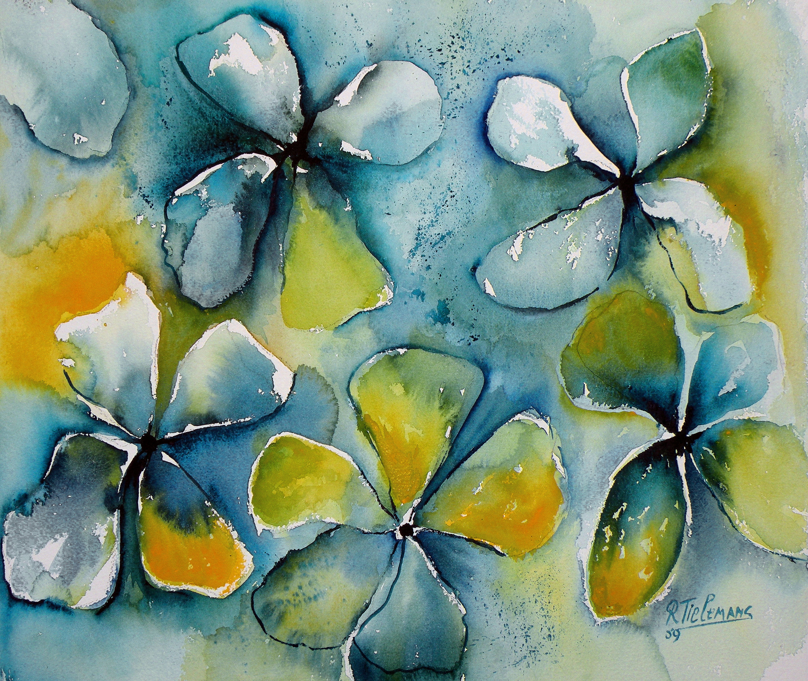 Abstract Oranje Geel Blauw Yellow Expressief Groen Blue Aquarel Natuur Green Expressive Lyrisch Orange Nature Watercolour Lyrical