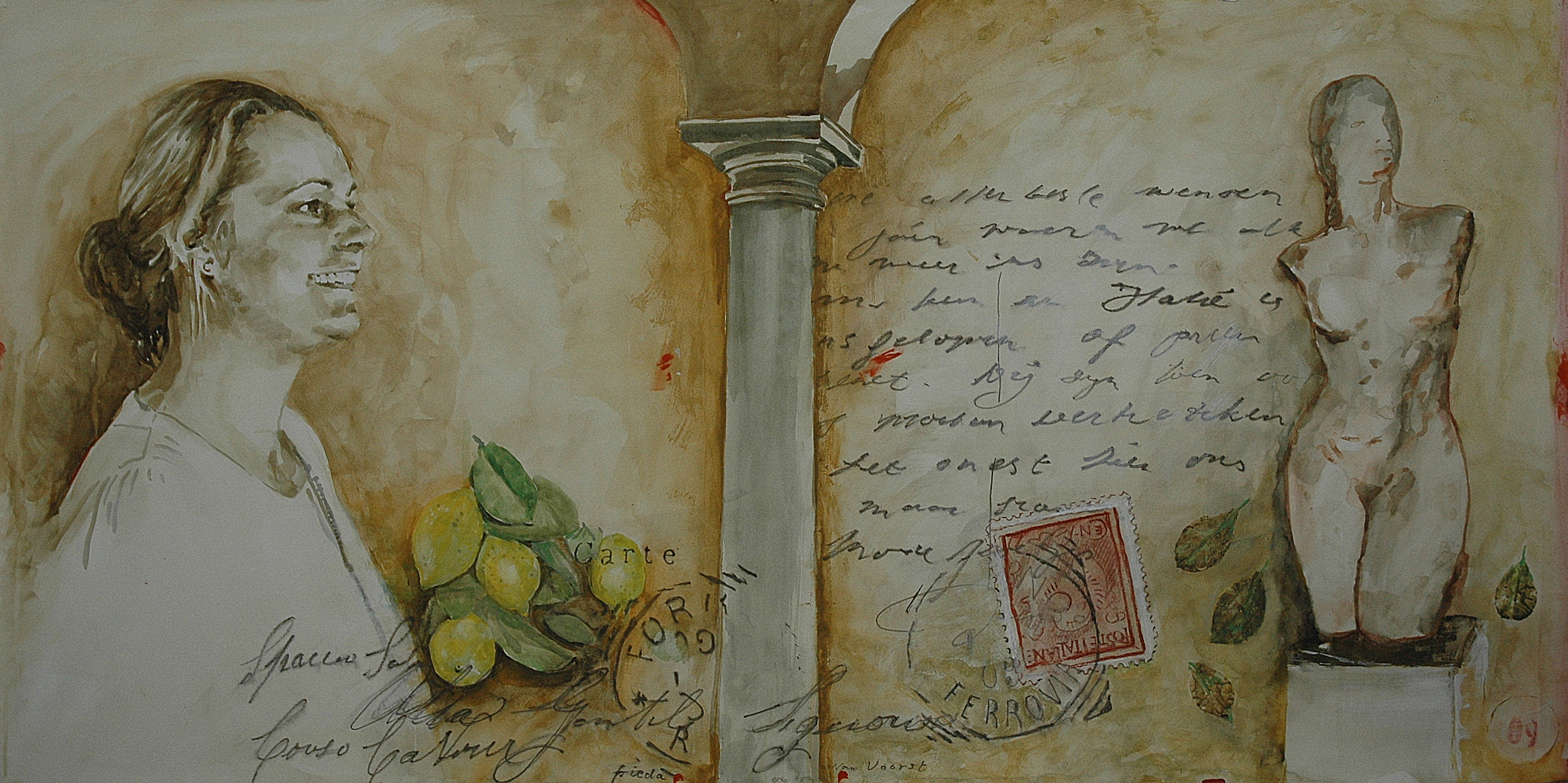 Portret in opdracht, gesitueerd in Italie. Afm. 200 x 100 cm.