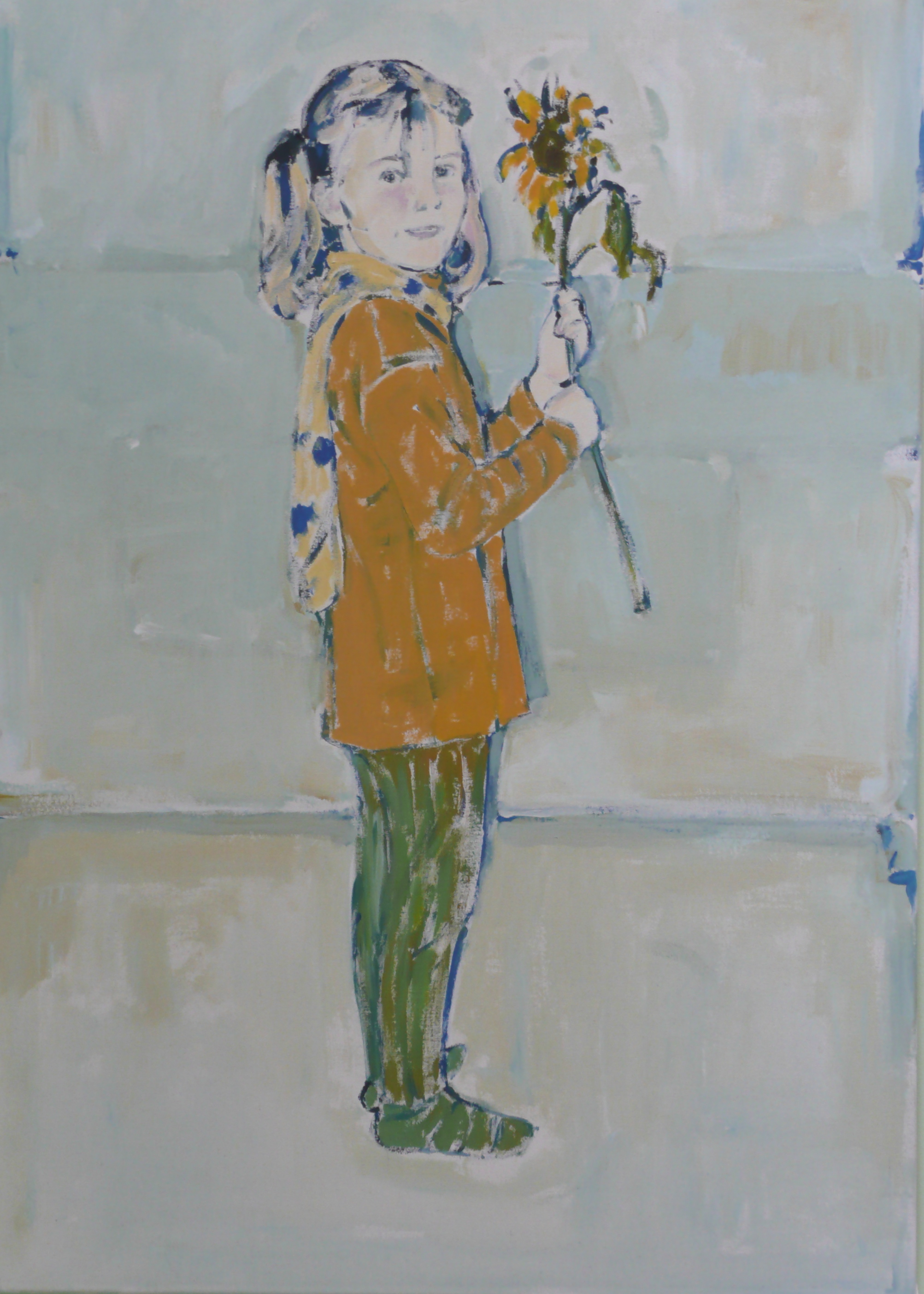 Zonnebloem Geel Meisje Trui Profiel Grijs Groen
