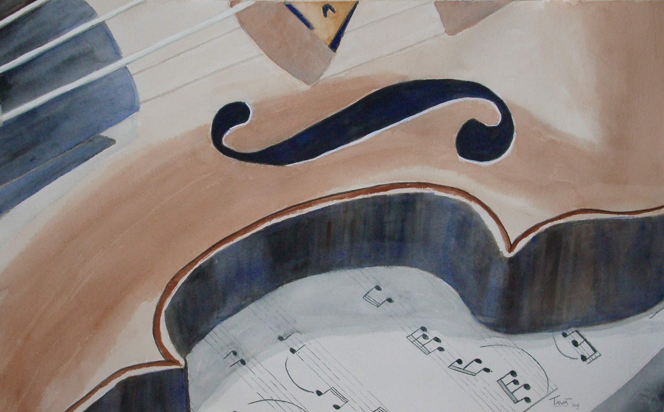 Viool Gedeelte Aquarel Bruintinten Muzieknoten